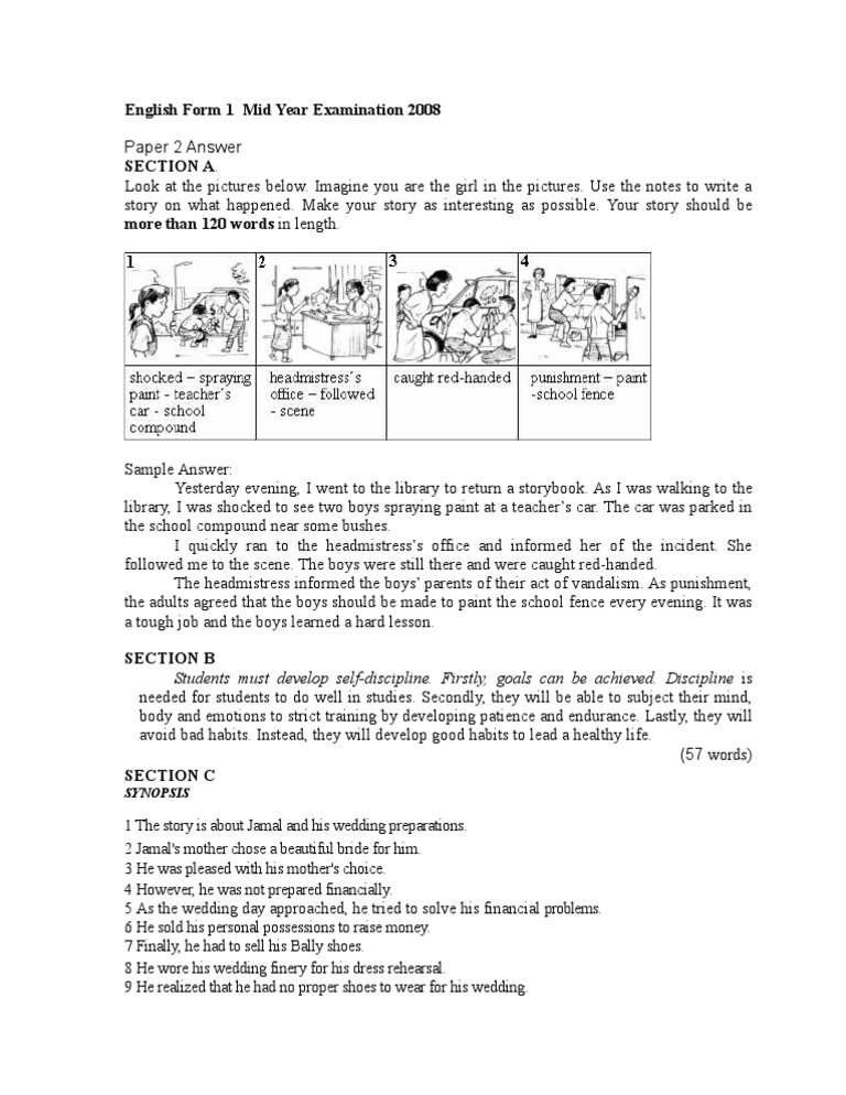 Kertas Peperiksaan Form 1 Mid Year 2008 English Bi Exam Paper 2 Answer Mus225 Pdf